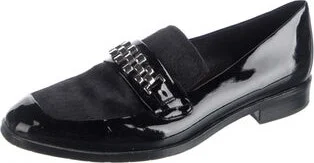 Donald Pliner Patent Leather Loafers Black Ponyhair Trim Semi-Pointed Toes with Chain-Link Accents Designer Fit: This designer typically runs true to size. Read more