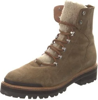Sigerson Morrison Suede Ankle Combat Boots Brown Round-Toes with Fur Trim Lace-Up Closure at Uppers Designer Fit: This designer typically runs true to size. Read more