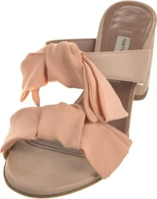 Tabitha Simmons Leather Slides Neutrals Quilted Pattern Bow Accents Crossover Straps Unfortunately, due to restrictions, this item may not be eligible for shipping in all areas. Read more