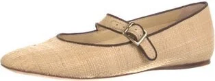 Loeffler Randall Straw Mary Jane Flats Neutrals Semi-Pointed Toes with Grosgrain Trim Mary Jane Strap & Buckle Closure at Sides Includes Box Read more