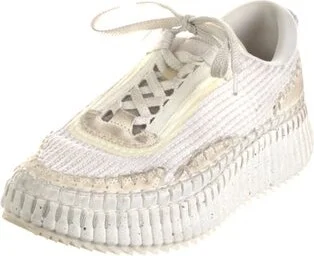 Chloé Canvas Low Top Sneakers Neutrals Rubber & Suede Trim Round-Toes Lace-Up Closure at Uppers Designer Fit: Sneakers by Chloé typically run a half size small. Read more