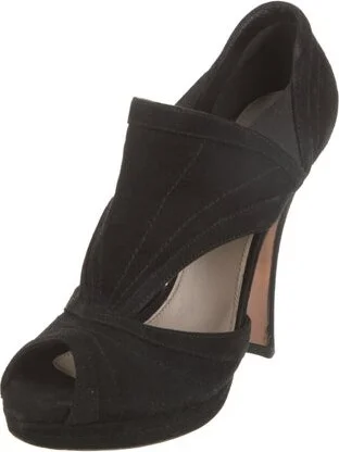 Prada Suede D'Orsay Pumps Black Peep-Toes Platform Straps Designer Fit: Pumps by Prada typically run a half size small. Read more