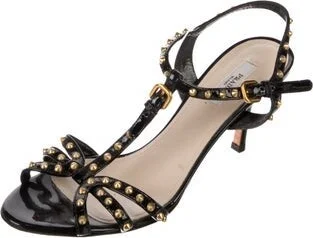 Prada Patent Leather T-Strap Sandals Black Straps Designer Fit: Sandals by Prada typically run a half size small.