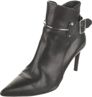 Balenciaga Leather Ankle Boots Black Pointed-Toes Wrap-Around Straps & Exposed Zip Closure at Sides Designer Fit: Boots by Balenciaga typically run a half size small. Unfortunately, due to restrictions, this item may not be eligible for shipping in all areas.