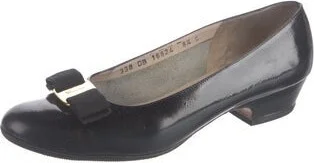 Salvatore Ferragamo Leather Pumps Black Vara Bow Accent Round-Toes with Bow Accents Includes Box Fit: This style typically runs a half size small. Unfortunately, due to restrictions, this item may not be eligible for shipping in all areas.