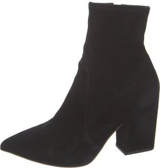 Loeffler Randall Suede Ankle Sock Boots Black Pointed-Toes Exposed Zip Closure at Sides