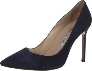 Manolo Blahnik Suede Pumps Blue Semi-Pointed Toes Fit: This style typically runs narrow and a half size small. Read more