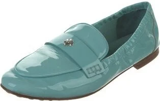Tory Burch Patent Leather Loafers Blue Semi-Pointed Toes Includes Box Designer Fit: This designer typically runs true to size.