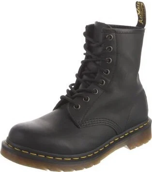 Dr. Martens Leather Mid-Calf Combat Boots Black Round-Toes Lace-Up Closure at Uppers Unfortunately, due to restrictions, this item may not be eligible for shipping in all areas. Read more