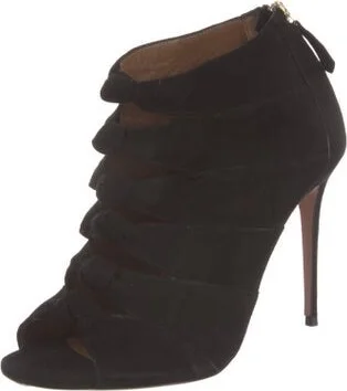 Aquazzura Suede Sandals Black Multistrap & Exposed Zip Closure at Ankles