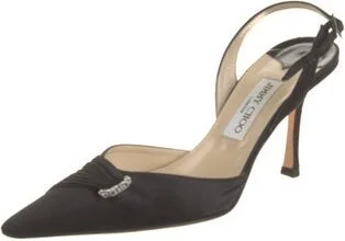 Jimmy Choo Satin Slingback Pumps Black Pointed-Toes Fit: This style typically runs a half size small. Read more