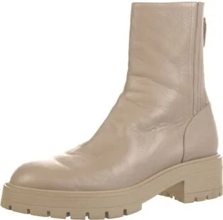 Aquazzura Leather Mid-Calf Combat Boots Neutrals Round-Toes Platform Zip Closures at Shafts Unfortunately, due to restrictions, this item may not be eligible for shipping in all areas.