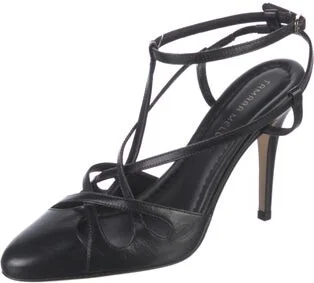 Tamara Mellon Leather T-Strap Pumps Black Semi-Pointed Toes Wrap-Around Straps & Tie Closures Unfortunately, due to restrictions, this item may not be eligible for shipping in all areas. Read more