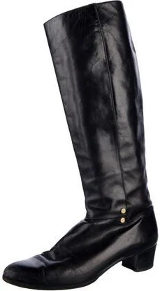Salvatore Ferragamo Leather Knee-High Riding Boots Black Round-Toes Exposed Zip Closure at Sides Designer Fit: Boots by Salvatore Ferragamo typically run a half size small. Unfortunately, due to restrictions, this item may not be eligible for shipping in all areas.