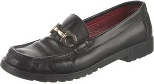 Salvatore Ferragamo Leather Loafers Black Round-Toes Fit: This style typically runs a half size small. Unfortunately, due to restrictions, this item may not be eligible for shipping in all areas.