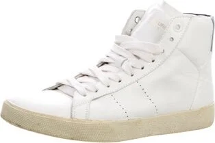 Saint Laurent Leather High Top Sneakers White Round-Toes Lace-Up Closure at Uppers Includes Dust Bag Unfortunately, due to restrictions, this item may not be eligible for shipping in all areas. Read more