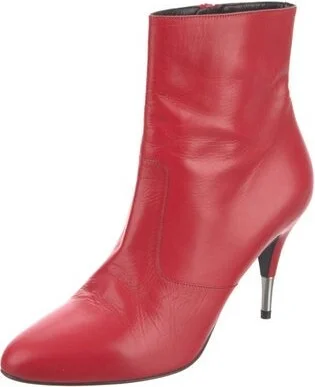 Saint Laurent Leather Ankle Boots Red Semi-Pointed Toes Concealed Zip Closure at Sides Fit: This style typically runs a half size small. Unfortunately, due to restrictions, this item may not be eligible for shipping in all areas.