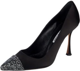 Manolo Blahnik Satin Pumps Black Pointed-Toes with Crystal Embellishments Includes Dust Bag Fit: This style typically runs narrow and a half size small. Read more