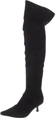 Fendi Suede Over-The-Knee Boots Black Leather Trim Pointed-Toes with Leather Trim Embellishment Concealed Zip Closure at Sides Designer Fit: Boots by Fendi typically run a half size small.