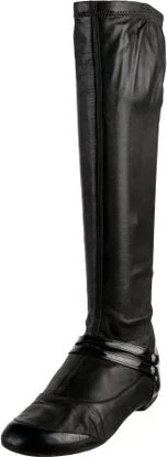 Chanel Leather Knee-High Riding Boots Black Interlocking CC Logo Patent Leather Trim Round-Toes Snap Closure at Sides Size not listed, estimated from measurements. Fit: This style typically runs a ful Read more