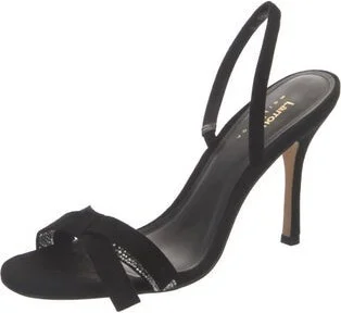 Larroude Suede Slingback Sandals Black Buckle Closure at Ankles Read more