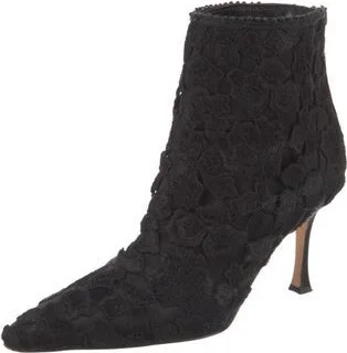 Manolo Blahnik Satin Ankle Sock Boots Black Pointed-Toes with Beaded Accents Designer Fit: This style typically runs a full size small. Read more