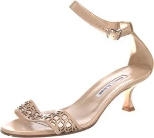 Manolo Blahnik Leather Sandals Neutrals Lasercut Accents Wrap-Around Straps Includes Dust Bag Fit: This style typically runs narrow and a half size small. Unfortunately, due to restrictions, this item Read more