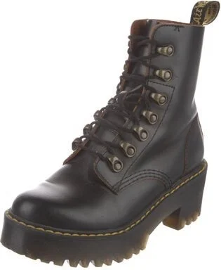 Dr. Martens Leather Ankle Combat Boots Black Round-Toes Platform Lace-Up Closure at Uppers Unfortunately, due to restrictions, this item may not be eligible for shipping in all areas. Read more