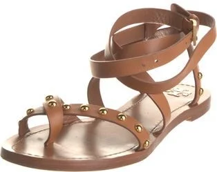 Tory Burch Leather Gladiator Sandals Brown Studded Accents Wrap-Around Straps & Buckle Closure at Ankles Designer Fit: This designer typically runs true to size. Unfortunately, due to restrictions, this item may not be eligible for shipping in all areas.