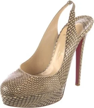 Christian Louboutin Patent Leather Slingback Pumps Neutrals Animal Print Round-Toes Platform Includes Dust Bag Designer Fit: This style typically runs a half size to a full size small. Read more