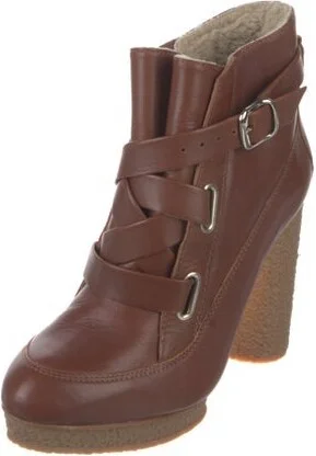 Loeffler Randall Leather Ankle Lace-Up Boots Brown Round-Toes Platform Wrap-Around Straps & Buckle Closure at Sides Unfortunately, due to restrictions, this item may not be eligible for shipping in all areas.