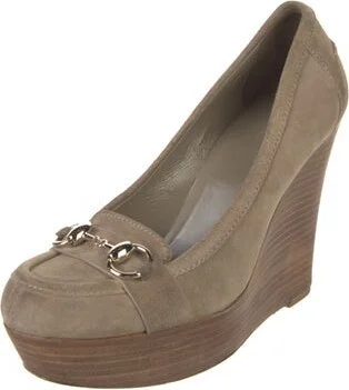 Gucci Suede Pumps Neutrals Round-Toes Platform Includes Dust Bag