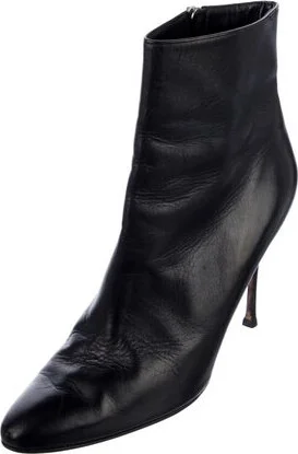 Manolo Blahnik Leather Ankle Boots Black Semi-Pointed Toes Concealed Zip Closure at Sides Designer Fit: This style typically runs a full size small. Unfortunately, due to restrictions, this item may n Read more