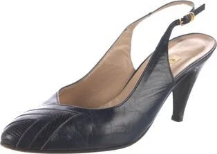 Gucci Leather Slingback Pumps Blue Semi-Pointed Toes Includes Box Unfortunately, due to restrictions, this item may not be eligible for shipping in all areas. Read more