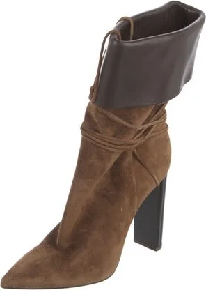 Saint Laurent Suede Ankle Boots Brown Pointed-Toes Wrap-Around Straps & Lace-Up Closure at Uppers Includes Dust Bag Fit: This style typically runs a half size small. Read more