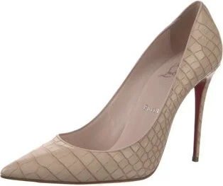 Christian Louboutin Embossed Leather Pumps Neutrals Pointed-Toes Designer Fit: This style typically runs a half size to a full size small.