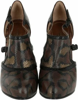 Bottega Veneta Calfskin Pumps Brown Animal Print Semi-Pointed Toes Buckle Closure