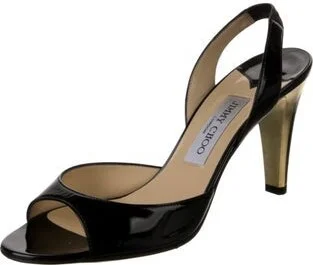 Jimmy Choo Patent Leather Slingback Pumps Black Round-Toes Straps & Buckle Closure at Ankles Includes Box Fit: This style typically runs a half size small. Read more