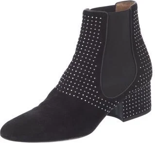 Laurence Dacade Suede Ankle Chelsea Boots Black Printed Leather Trim Semi-Pointed Toes with Studded Accents Read more