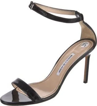 Manolo Blahnik Patent Leather Sandals Black Wrap-Around Straps & Buckle Closure at Ankles Fit: This style typically runs narrow and a half size small. Read more