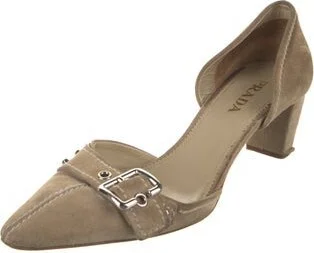 Prada Suede D'Orsay Pumps Brown Leather Trim Semi-Pointed Toes with Leather Trim Embellishment Buckle Closure At Uppers Designer Fit: Pumps by Prada typically run a half size small. Read more