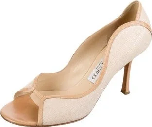 Jimmy Choo Canvas Slingback Sandals Neutrals Leather Trim Embellishment & Leather Trim Fit: This style typically runs a full size small.