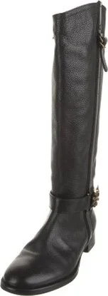 Tory Burch Leather Knee-High Riding Boots Black Round-Toes Wrap-Around Straps & Exposed Zip Closure at Sides Designer Fit: This designer typically runs true to size. Unfortunately, due to restrictions Read more
