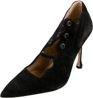 Manolo Blahnik Suede Pumps Black Pointed-Toes Fit: This style typically runs narrow and a half size small. Read more
