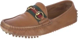 Gucci Leather Loafers Brown Round-Toes Designer Fit: Flats by Gucci typically run a half size small. Unfortunately, due to restrictions, this item may not be eligible for shipping in all areas. Read more