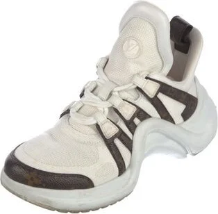 Louis Vuitton Patent Leather Low Top Chunky Sneakers White Colorblock Pattern Round-Toes Designer Fit: Sneakers by Louis Vuitton typically run a half size small. Read more