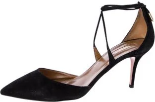 Aquazzura Suede D'Orsay Pumps Black Pointed-Toes Tie Closures Read more
