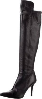 Stuart Weitzman Leather Over-The-Knee Boots Black Pointed-Toes Exposed Zip Closure at Sides Designer Fit: This designer typically runs true to size. Unfortunately, due to restrictions, this item may n Read more