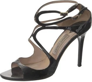 Jimmy Choo Patent Leather Sandals Black Wrap-Around Straps Fit: This style typically runs a full size small.