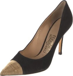 Salvatore Ferragamo Suede Pumps Black Colorblock Pattern Pointed-Toes Fit: This style typically runs a half size small. Read more